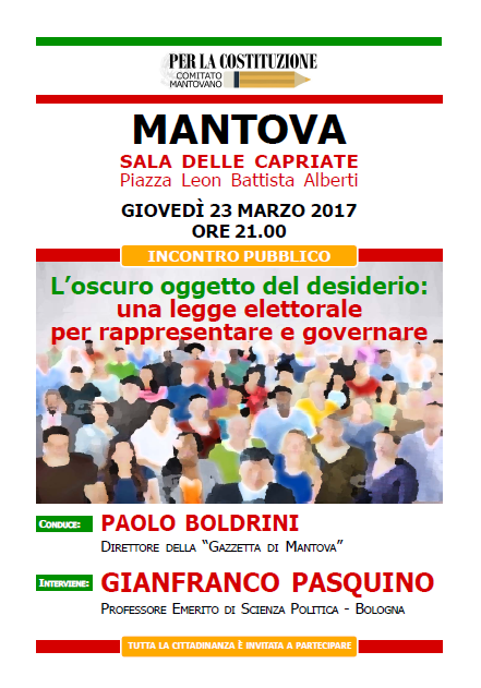 Home » Uncategorized » INVITO L’oscuro oggetto del desiderio: una legge elettorale per rappresentare e governare #Mantova