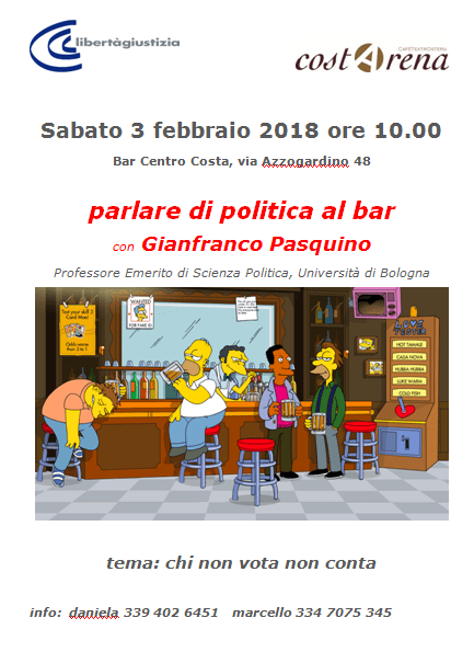 Home » Chi non vota non conta INVITO 3febbraio #Bologna #ElezioniPolitiche2018 #ParlarediPoliticaalBar » 3 febbraio Bologna