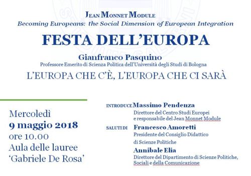 Aula delle lauree ‘Gabriele De Rosa’Il Centro Studi Europei (www.centrostudieuropei.it), nell’ambito delle attività della cattedra Jean Monnet Becoming Becoming Europeans: the Social Dimension of European Integration, entrambi diretti dal prof. Massimo Pendenza, organizza in collaborazione con il Dipartimento di Scienze politiche, sociali e della comunicazione, la terza edizione della Festa dell’Europa.