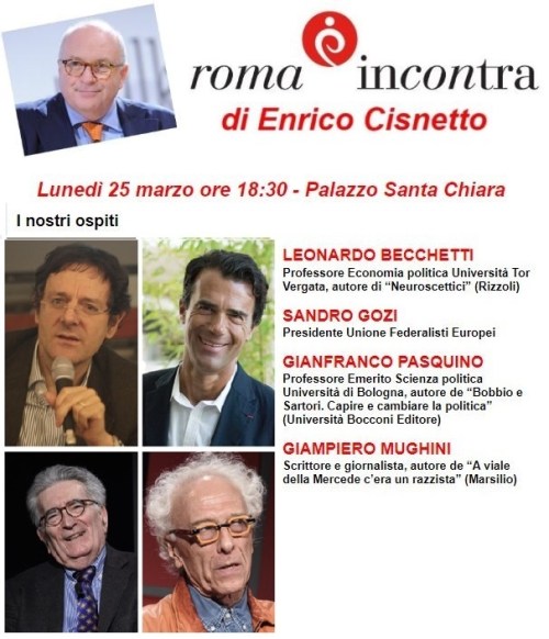 Con: Leonardo Becchetti; Sandro Gozi; Gianfranco Pasquino; Giampiero Mughini