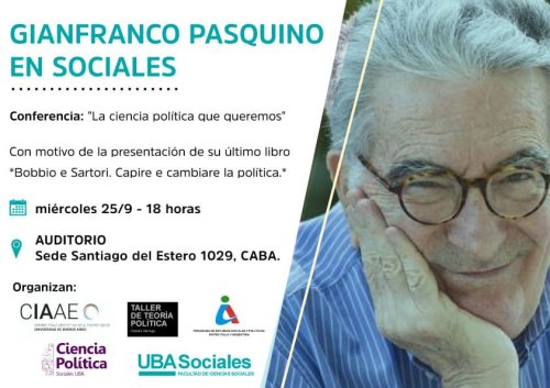 En el marco de su visita a Argentina para participar de las Jornadas Democracia – Norberto Bobbio, Centro Ítalo Argentino de Altos Estudios (UBA), el profesor Gianfranco Pasquino estará presentando su último libro “Bobbio e Sartori. capire e cambiare la politica” en el auditorio de la Facultad de Ciencias Sociales de la UBA el próximo miércoles 25 de septiembre a las 18.00 horas.