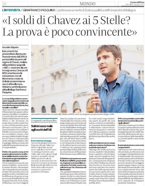 Il documento che proverebbe il finanziamento appare abbastanza contraffatto, considerati i particolari che alcuni quotidiani italiani hanno messo in rilievo e che mostrano un modo di procedere pasticciato. Per cui il documento non è del tutto convincente. Che ci sia un tentativo di screditarei 5 stelle è noto, loro però vi hanno contribuito: troppe volte avevano infatto elogiato i regime di Chavez e sono poi stati moto ambigui su Maduro. Che Casaleggio abbia accettato dei soldi dal Venezuela…