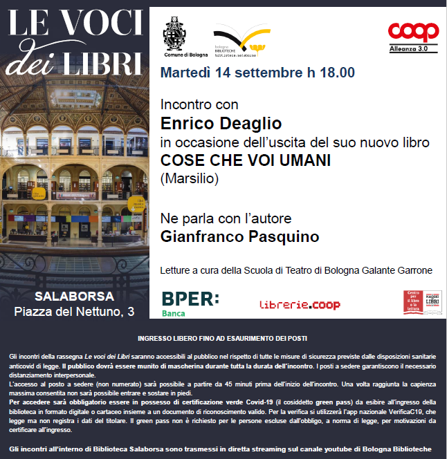 Cose che voi umani @MarsilioEditori a #Bologna con #EnricoDeaglio #14settembre Le voci dei libri