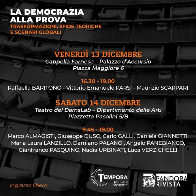 INVITO La democrazia alla prova – giornate di studi @pandorarivista #14dicembre ore 17 #Bologna