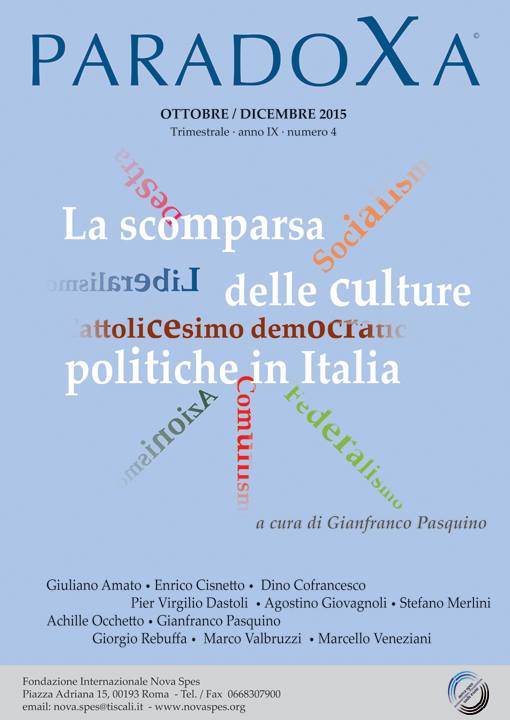 … Una cultura politica contiene una visione della società e dello Stato, come sono e come dovrebbero diventare. Attribuisce diritti e doveri, ruoli e compiti ai governanti, ai rappresentanti e ai cittadini. Si fonda su criteri precisi di rappresentatività e di responsabilizzazione. Cerca di tenere insieme tutto questo nella maniera più coerente possibile. Negli articoli del fascicolo che seguono ciascuno degli autori esplora e valuta i molti aspetti delle diverse e specifiche culture politiche italiane e delle ragioni che hanno portato alla loro eclissi.