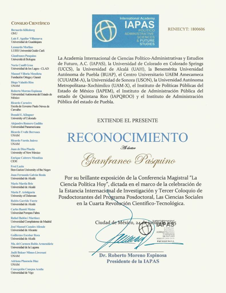 GIANFRANCO PASQUINO, dal 1970 socio dell’Associazione “il Mulino”, è Professore Emerito di Scienza politica, Università di Bologna