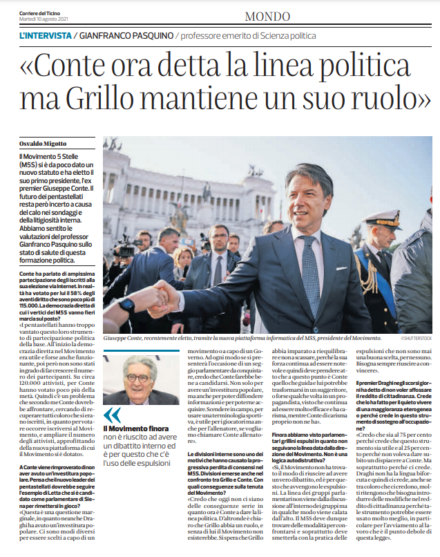 Conte ora detta la linea politica ma Grillo mantiene un suo ruolo #intervista @CdT_Online