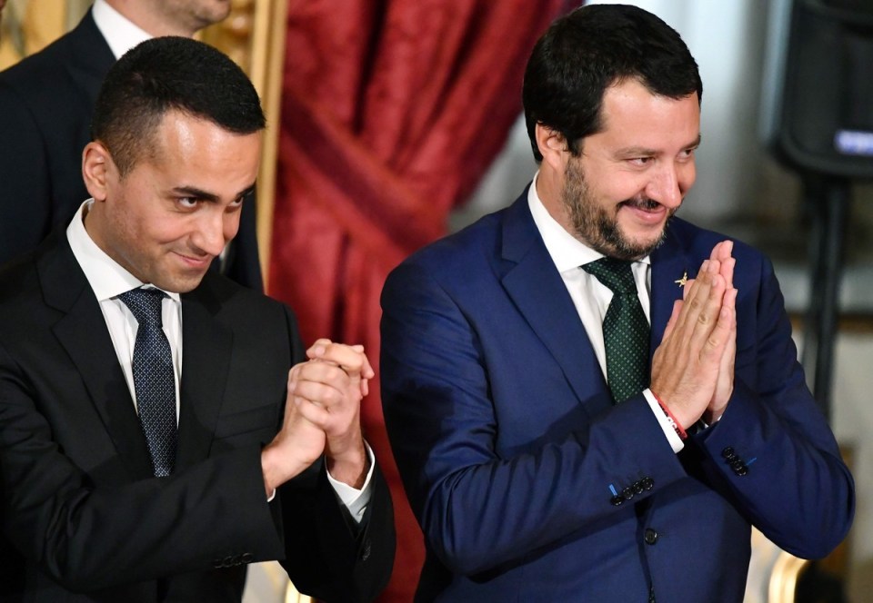 A la derecha, Matteo Salvini, polémico ministro del Interior italiano; a su lado, Luigi di Maio, ministro de Trabajo e Industria (AFP/Alberto Pizzoli).