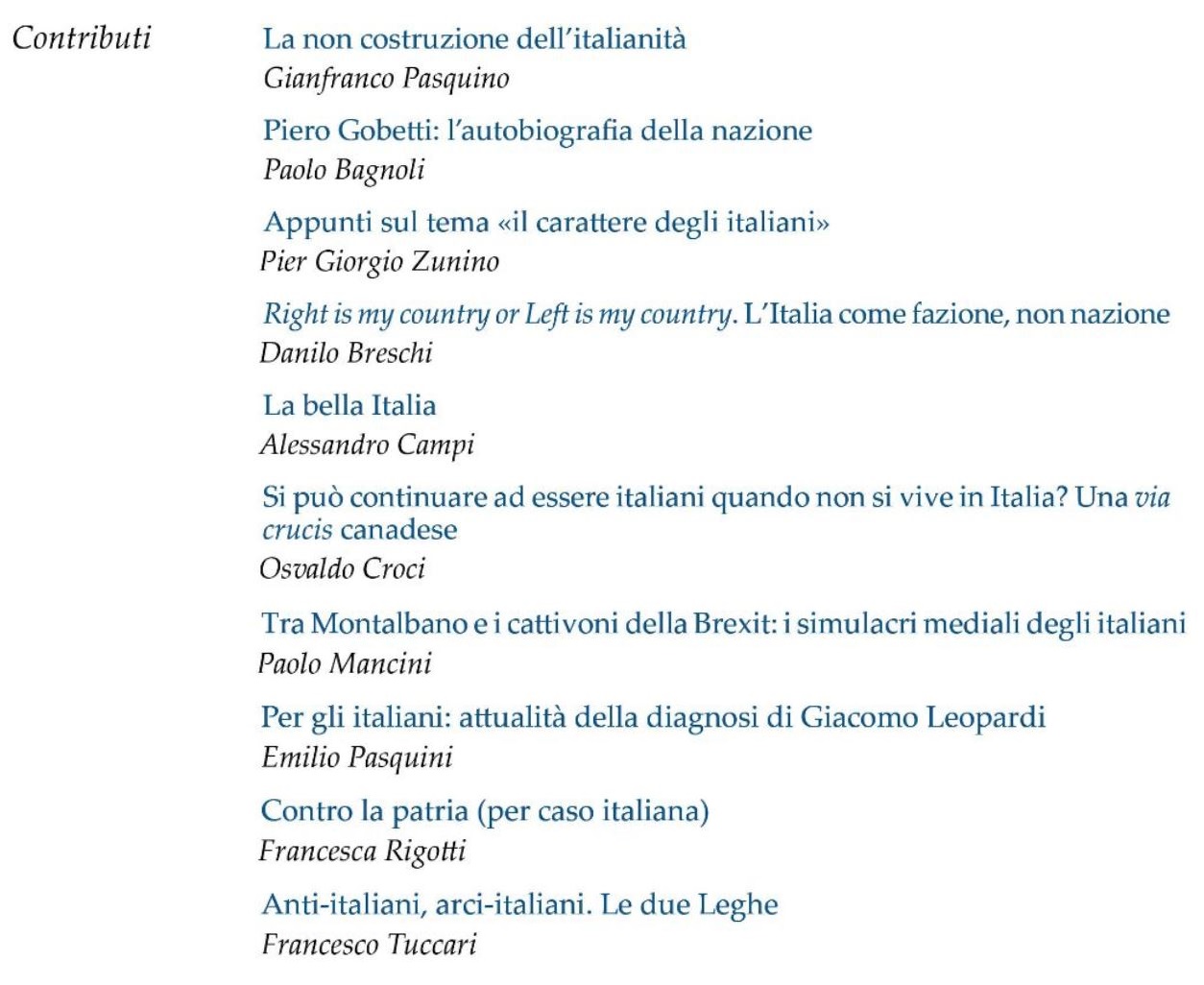 Essere (o non essere) italiani, a cura di Gianfranco Pasquino, Paradoxa, Aprile/Giugno 2020