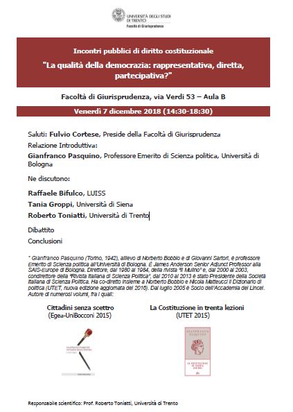 La qualità della democrazia: rappresentativa, diretta, partecipativa? #Trento #7dicembre
