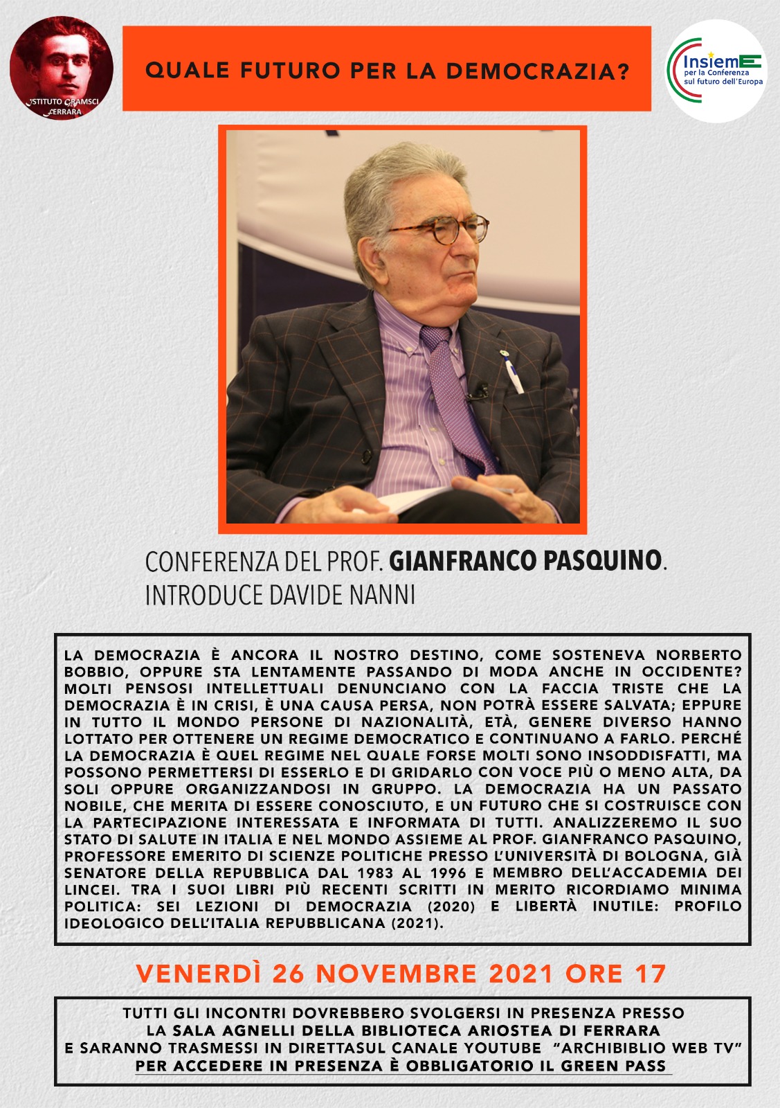 Quale futuro per la democrazia? #26novembre #Ferrara #inpresenza e #livestream