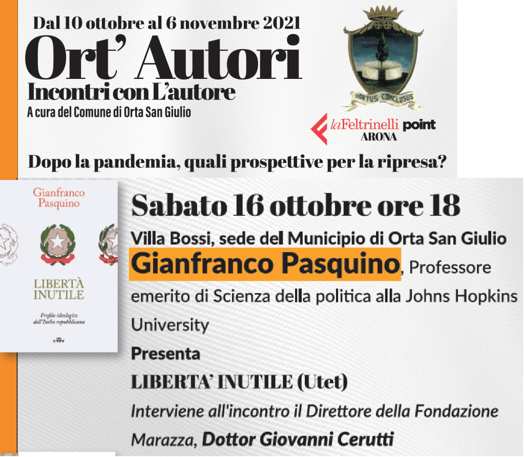 Libertà inutile a “Ort’Autori: incontri con l’autore” #16ottobre Orta San Giulio #Novara @UtetLibri