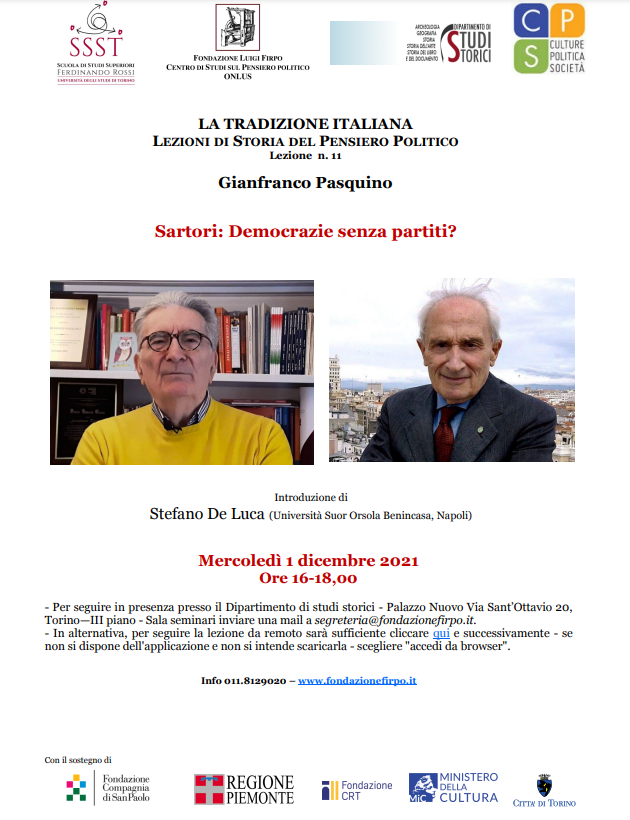 Sartori: Democrazie senza partiti? #Torino #1dicembre La Tradizione Italiana. Lezioni di Storia del pensiero politico