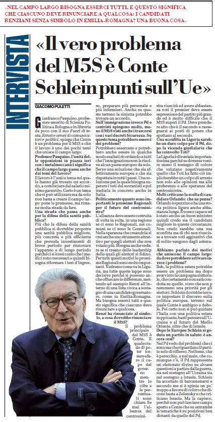 Gianfranco Pasquino, professore emerito di Scienza Politica a Bologna e in libreria da poco con il suo Fuori di testa. Errori e orrori di comunicatori e politici, spiega che Conte è un problema per il M5S e che il lavoro è uno dei pochi temi che unisce il campo largo.