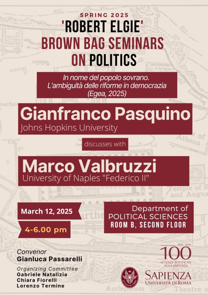 In nome del popolo sovrano. Potere e ambiguità delle riforme in democrazia #March12 #Roma #Sapienza – “Robert Elgie” Brown Bag Seminars on Politics