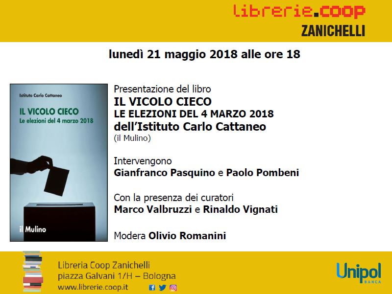 IL VICOLO CIECO LE ELEZIONI DEL 4 MARZO 2018 #Bologna #21maggio @librerieCoop #ilVicoloCiecoTour @Ist_Cattaneo