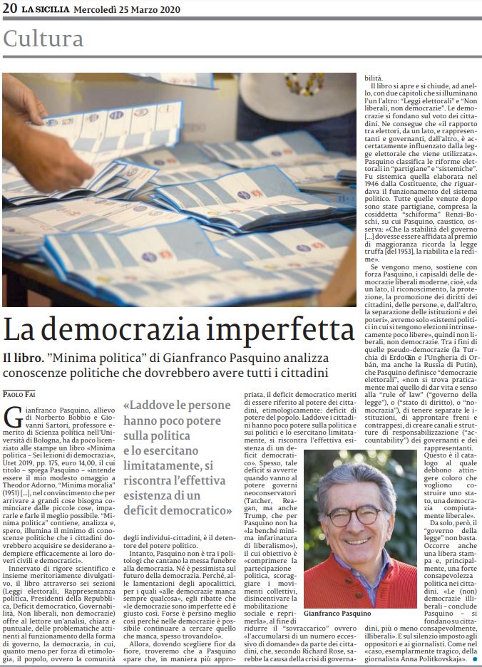 Il libro. ”Minima politica” di Gianfranco Pasquino analizza conoscenze politiche che dovrebbero avere tutti i cittadini. La recensione di Paolo fai